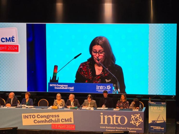 وشدد الاتحاد، في مؤتمره العام، بحضور سفيرة فلسطين لدى ايرلندا جيلان وهبة، على دعوة الاتحاد الأوروبي لتوفير الدعم لإعادة إعمار المدارس المدمرة، ودعم العملية التعليمية والبنية التحتية.