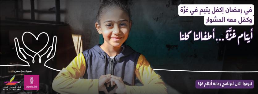 الأطفال الأيتام في قطاع غزة أصبحوا جزءاً من مسؤوليتنا، من التزامنا.. من ايماننا بأن تكاتفنا مع بعضنا البعض سيسهم في بث أمل كبير للأيتام نحو حياة كريمة.. فهم ليسو وحدهم، كلنا معهم..