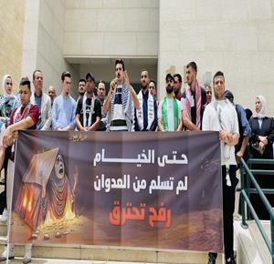 وجاءت الوقفة بدعوة من إدارة الجامعة ونقابة العاملين ومجلس اتحاد الطلبة والكتل الطلابية.