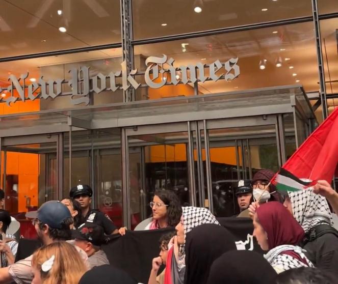 شارك آلاف النشطاء في مدينة نيويورك، في مظاهرات حاشدة أمام مقرات عدة لوسائل إعلام أميركية أبرزها "نيويورك تايمز"، و"نيوز كوربوريشن" المالكة لـ"فوكس نيوز" وذلك تنديداً بالتغطية المتحيزة التي تقوم بها لصالح رواية الاحتلال الإسرائيلي المزيفة في عدوانه وحرب الإبادة على قطاع غزة.