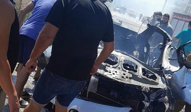 وتوجّه الإسعاف وفرق الدفاع المدني إلى المكان لإخماد النيران المندلعة في السيارة ومحاولة تخليص المصابين فيها.