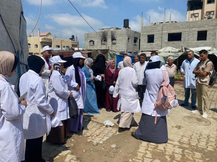 نفذت اللجنة الشعبية للاجئين في مخيم البريج وسط قطاع غزة، مسحا صحيا للنازحين في مراكز إيواء غرب المخيم.