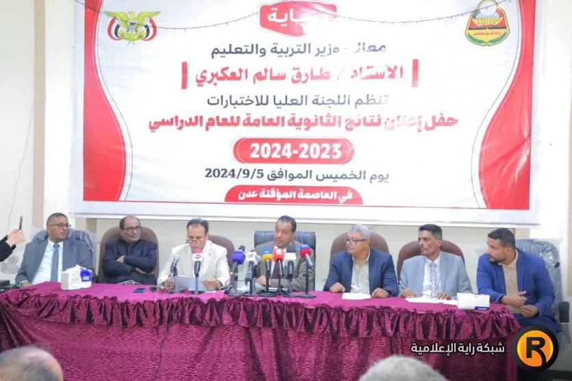نشرت وزارة التربية والتعليم، مساء اليوم الخميس، بالعاصمة المؤقتة عدن، نتائج اختبارات شهادة الثانوية العامة 2024 في اليمن بقسميها العلمي والأدبي للعام الدراسي ٢٠٢٤/٢٠٢٣م بنسبة نجاح بلغت ٨٦.١٪.