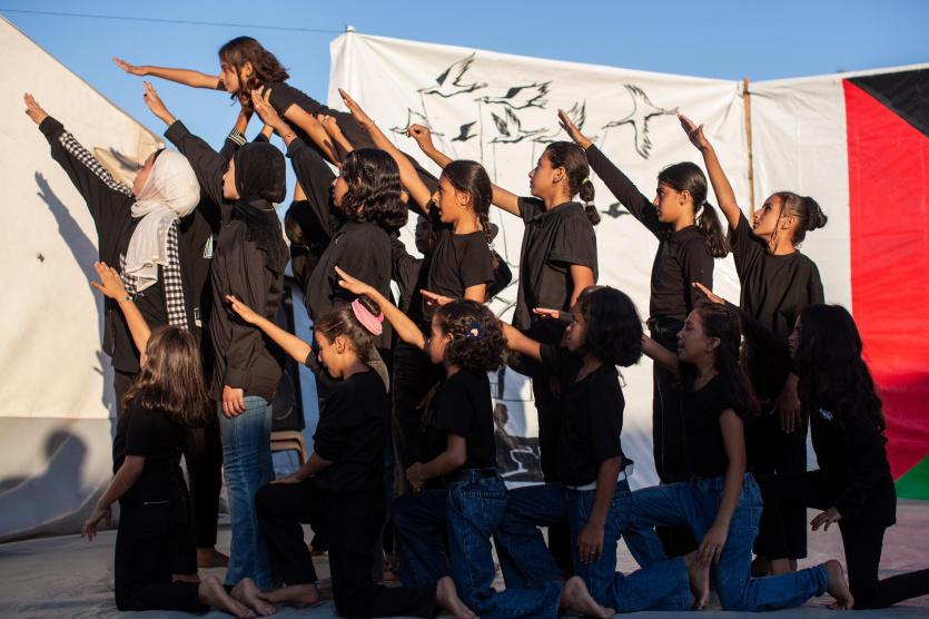وقرر القائمون على المبادرة خلال العروض، عمل لوحة استعراضية تضم 23 طفلا/ة يوجهون من خلالها رسالة للعرب بشكل خاص وهو سؤال أين ضميركم؟، وأن أطفال غزة من حقهم العيش بأمان وسلام ومثل مختلف أطفال العالم.