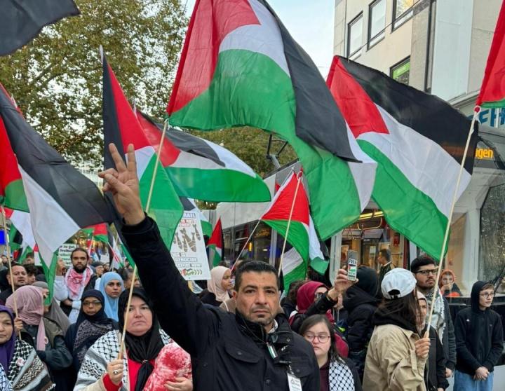 نظمت الجالية الفلسطينية والتجمع الفلسطيني للوطن والشتات، في مدينة بريمن الألمانية، مسيرة حاشدة تنديدا باستمرار العدوان وجرائم ومجازر الاحتلال الإسرائيلي في قطاع غزة، والضفة الغربية بما فيها القدس، بمشاركة الجاليات العربية والإسلامية ومتضامنين ألمان وأوروبيين.
