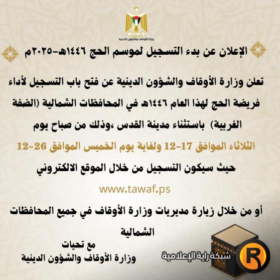 وكان وزير الأوقاف والشؤون الدينية، محمد مصطفى نجم، قد أعلن في تصريح صحفي، عن فتح باب التسجيل لموسم الحج 1446هـ / 2025م في كافة المحافظات الشمالية، باستثناء مدينة القدس.