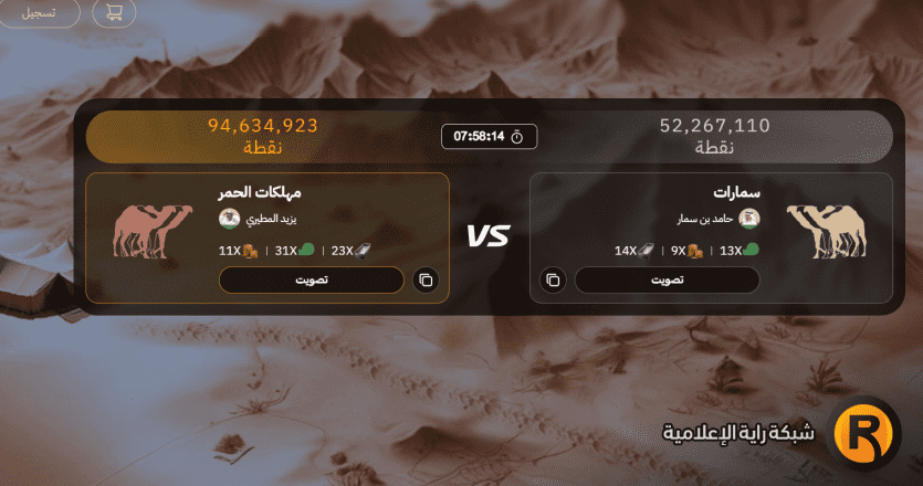 وتنشر قناة الصحراء رابط تصويت الصياهد حيث يشارك الآلاف في هذه المسابقات الجارية على مدار الساعة خصوصا عبر موقع التواصل الاجتماعي تويتر وأيضا يوتيوب.