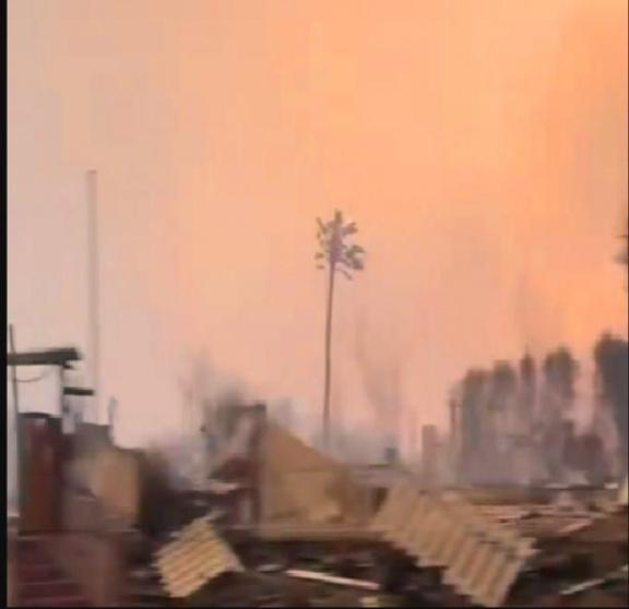 ظهر في المقطع مشاهد تُشبه آثار كارثة نووية، حيث اشتعلت النيران بعنف ودمرت كل شيء في طريقها. من بين المواقع التي طالتها الحرائق: