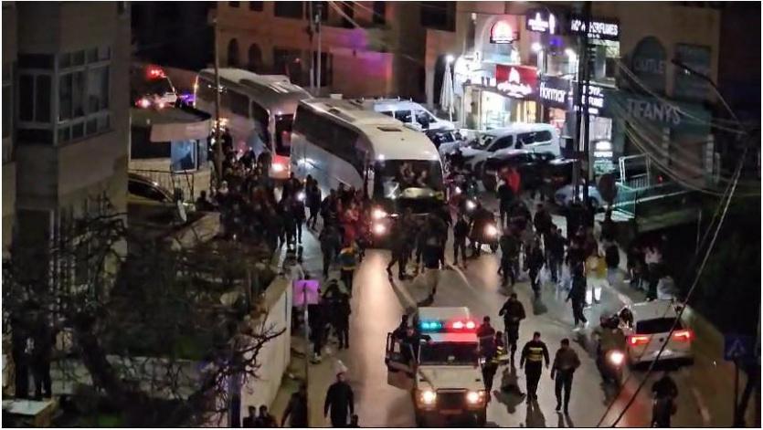 واحتشد مئات المواطنين وذوو المعتقلين في مجمع رام الله الترويحي، لاستقبال الأسرى المفرج عنهم من سجن "عوفر".