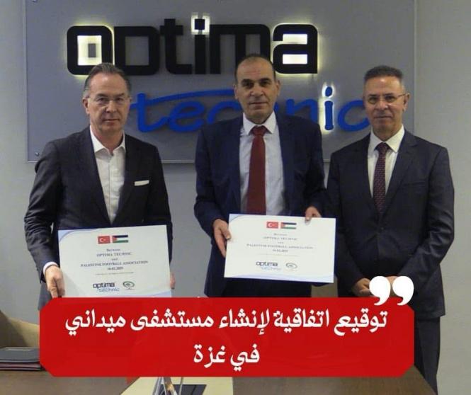 وجرت مراسم توقيع الاتفاقية في العاصمة التركية أنقرة، بحضور الوزير عصام القدومي، الأمين العام للمجلس الأعلى للشباب والرياضة، والسيد تامر أولجان، رئيس شركة "أوبتيما تكنيك"، وسفير دولة فلسطين لدى الجمهورية التركية، الدكتور فائد مصطفى، ومدير الدائرة الطبية في اتحاد الكرة، الدكتور بدر عقل، وممثلين عن جمعية الهلال الأحمر الفلسطيني.