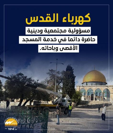وأكدت شركة كهرباء محافظة القدس أنها تعتبر هذا العمل جزءاً من مسؤوليتها الوطنية والدينية تجاه المدينة وأهلها، وأنها ستكون دائماً في خدمة المسجد الأقصى والقدس.
