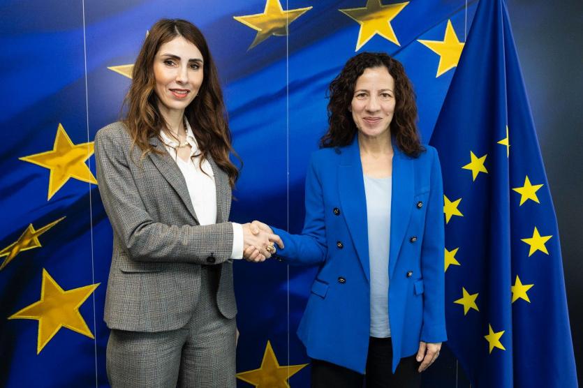 التقت معالي الدكتورة إيناس العطاري، وزيرة العمل الفلسطينية، بنائبة الرئيس التنفيذي للمفوضية الأوروبية لحقوق العمل والمهارات والوظائف ذات الجودة والاستعداد، روكسانا مينزاتو، في العاصمة البلجيكية بروكسل، وذلك لمناقشة واقع البطالة في فلسطين، وخطط الوزارة لمواجهتها، وبرامج الطوارئ لدعم العمال الفلسطينيين في ظل التحديات الاقتصادية الراهنة.