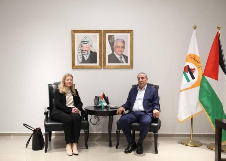 التقى، اليوم الاثنين، أمين سر اللجنة التنفيذية لمنظمة التحرير الفلسطينية حسين الشيخ، في مكتبه بمدينة رام الله، بالقنصل العام البريطانية هيلين وينترتون.