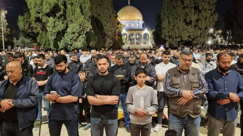 وذكرت دائرة الأوقاف الإسلامية في القدس أن نحو 70 ألف مصل أدوا صلاتي العشاء والتراويح في المسجد الأقصى، غالبيتهم من أبناء المدينة المقدسة ومن داخل أراضي عام 1948.