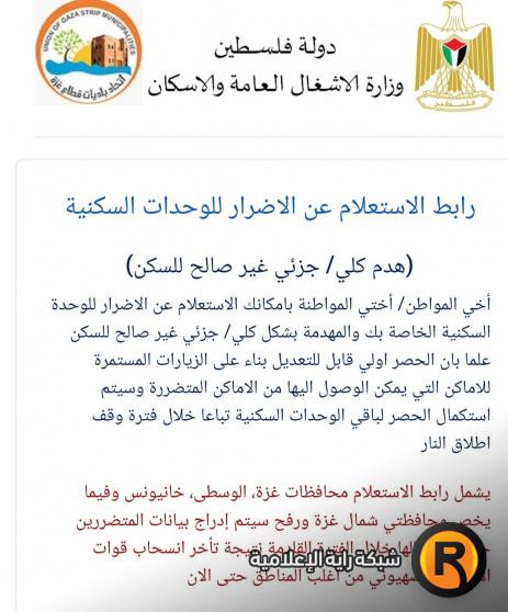 رابط الاستعلام عن أضرار الوحدات السكنية هدم كلي أو جزئي غير صالح للسكن حرب غزة 2025 تقديم طلب حصر الأضرار
