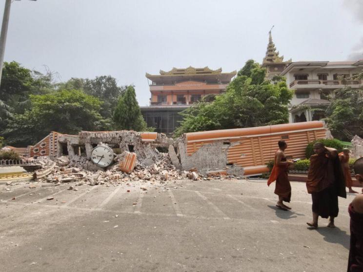 ووفقا لسكان محليين، انهارت عدة مبان شاهقة في ماندالاي، التي كانت في السابق مقرا لآخر مملكة في ميانمار قبل الاستعمار.