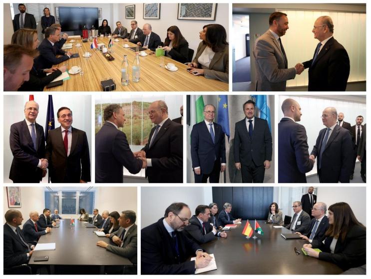 يشار إلى أن رئيس الوزراء قد عقد سلسلة اجتماعات مع كل من: نائب رئيس الوزراء وزير خارجية لوكسمبورغ كزافييه بيتل، ونائب رئيس الوزراء وزير خارجية البلجيكي ماكسيم بريفو، ووزير خارجية فرنسا جان نويل بارو، ونائب رئيس الوزراء وزير خارجية مالطا ايان بورغ، ونائب رئيس الوزراء وزير خارجية هولندا كاسبار فيلدكام، ووزير خارجية إسبانيا خوسيه مانويل ألباريس، بحضور وزير التخطيط والتعاون الدولي الفلسطيني وائل زقوت، ووزيرة الدولة لشؤون الخارجية فارسين شاهين، وسفيرة فلسطين لدى الاتحاد الأوروبي وبلجيكا ولوكسمبورغ أمل جادو الشكعة، ومساعد وزير الخارجية السفير عمر عوض الله.