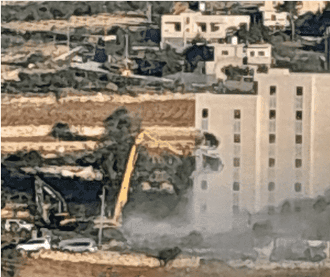 شرعت جرافات الاحتلال الإسرائيلي، منذ صباح اليوم الاثنين، بهدم عمارة سكنية، مكونة من سبعة طوابق قيد الانشاء، في بلدة بيت أمر، شمال الخليل.