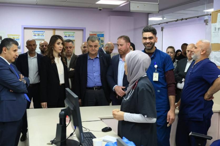 وكان في استقبالها د. معتصم محيسن الوكيل المساعد لشؤون المستشفيات والطواريء، و د. مراد بركات مدير عام مجمع فلسطين الطبي.