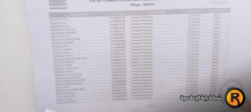 سيتم تنصيب الناجحين تدريجيًا عبر مختلف المنشآت والمواقع التابعة لسوناطراك، وذلك وفقًا للاحتياجات المسجلة، وفي إطار احترام التخصصات والكفاءات المطلوبة. (النهار أونلاين)