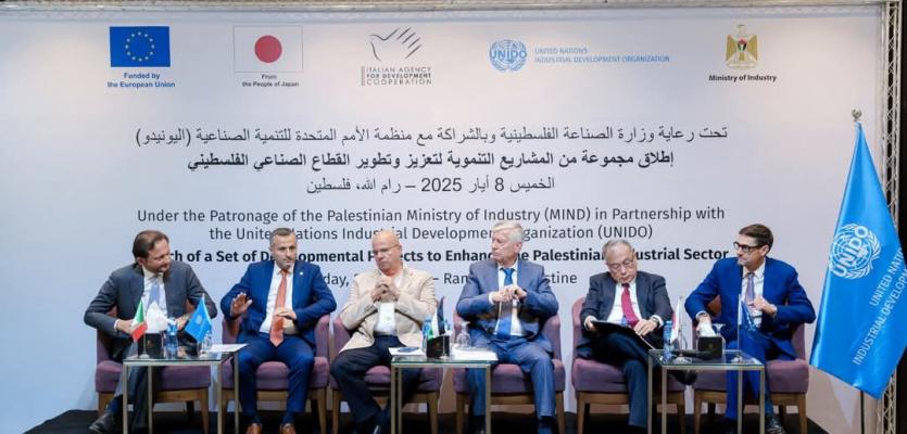 ولتطوير الصناعات الوطنية، تم إطلاق سلسلة مشاريع تنموية برعاية وزارة الصناعة، وبالتعاون مع منظمة الأمم المتحدة للتنمية الصناعية "اليونيدو"، خلال فعالية في رام الله، ضمن أول برنامج شراكة من هذا النوع بدعم من الاتحاد الأوروبي واليابان، والوكالة الإيطالية للتعاون الإنمائي.
