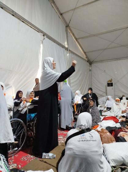من مشعري عرفات ومنى، وضمن برنامج التوعية والإرشاد الديني لحجاج فلسطين، نفذت البعثة الإرشادية والوعظية النسائية المرافقة لبعثة الحج الفلسطينية سلسلة من النشاطات والدروس الدينية المكثفة في خيام الحاجات.