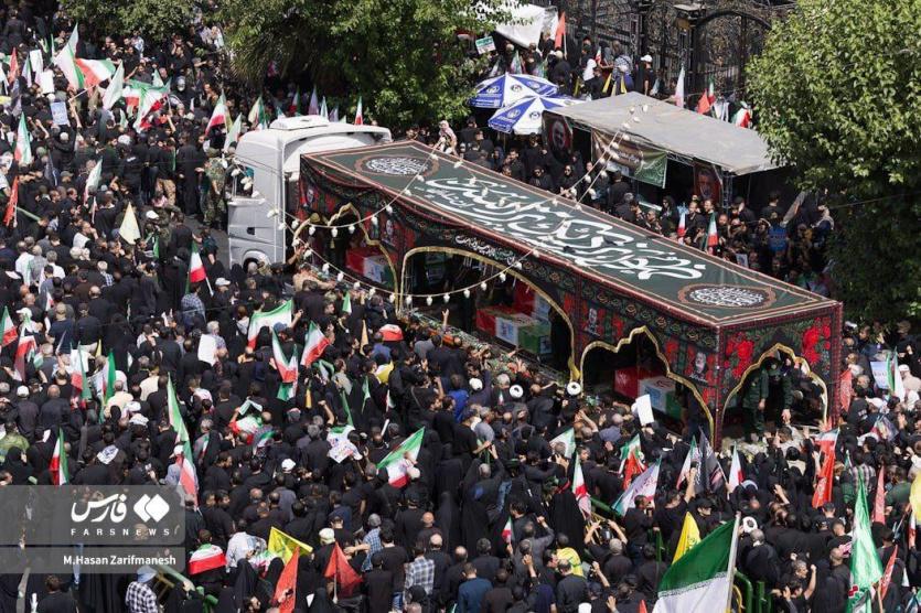 ومع انطلاق التشييع في الساعة الثامنة صباحًا، أعلن التلفزيون الرسمي "بدأت رسميًا مراسم تكريم الشهداء"، عارضًا مشاهد لحشود تجمعت في وسط طهران.