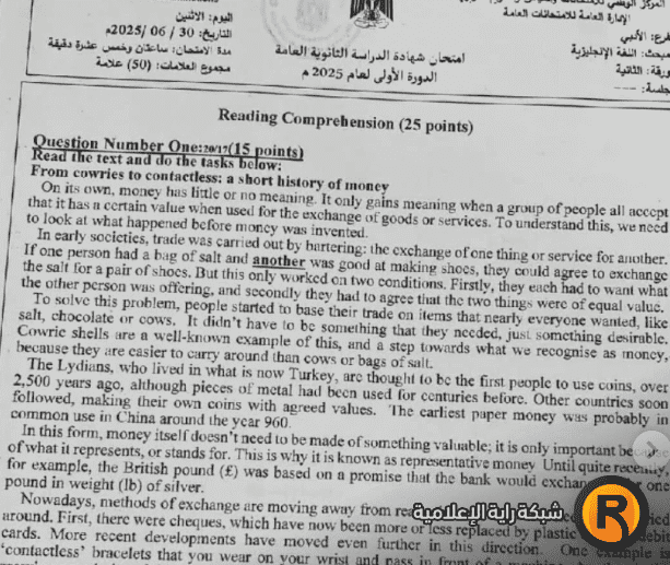 نوفر لكم فيما يلي النسخة المصورة من ورقة أسئلة امتحان اللغة الإنجليزية الورقة الثانية للفرع الأدبي، مع الحلول النموذجية المعتمدة، كما وردت عن المعلمين المختصين ومنصات الدعم الأكاديمي: