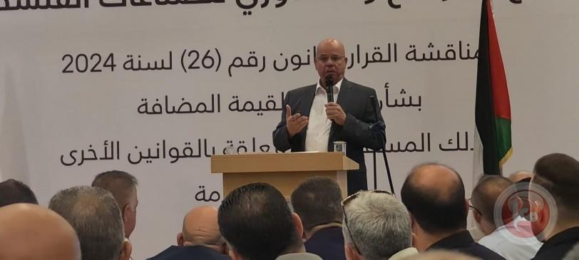 جاء ذلك خلال الاجتماع الموسع والتشاوري الذي دعا له الاتحاد العام، لمناقشة القرار بقانون رقم (26) لسنة 2024 بشأن ضريبة القيمة المضافة وقوانين أخرى، بحضور رؤساء الاتحادات الصناعية الفلسطينية، والشركاء الداعمين للصناعة الوطنية، كما شارك بالاجتماع عبر تقنية الفيديو كونفرس اعضاء الاتحادات الصناعية من قطاع غزة.