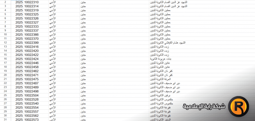 أسماء أوائل الثانوية العامة توجيهي فلسطين 2025 رابط نتائج التوجيهي اضغط هنا