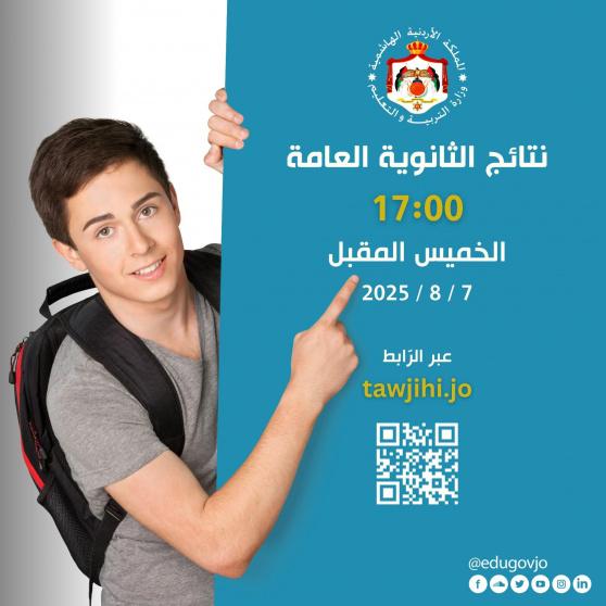 يُذكر أن امتحانات التوجيهي للعام 2025 جرت وسط ترتيبات تنظيمية مشددة، لضمان النزاهة وتكافؤ الفرص بين الطلبة، في ظل متابعة حثيثة من الوزارة والكوادر التعليمية والإدارية.
