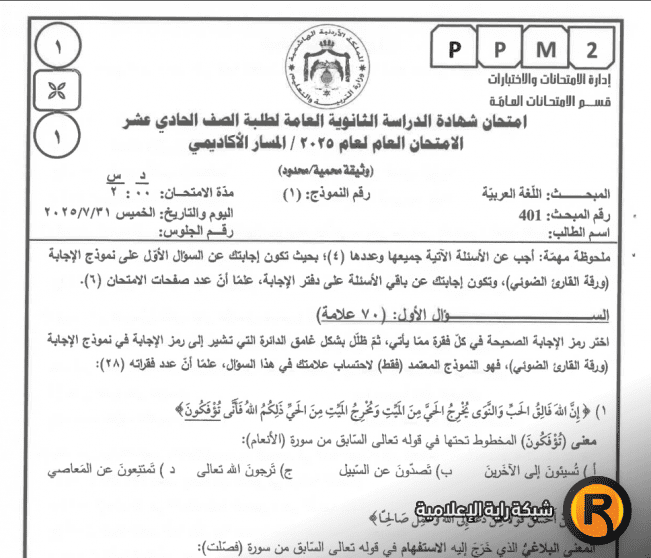 إجابات امتحان اللغة العربية توجيهي الأردن 2025 | الصف الحادي عشر (مواليد 2008)