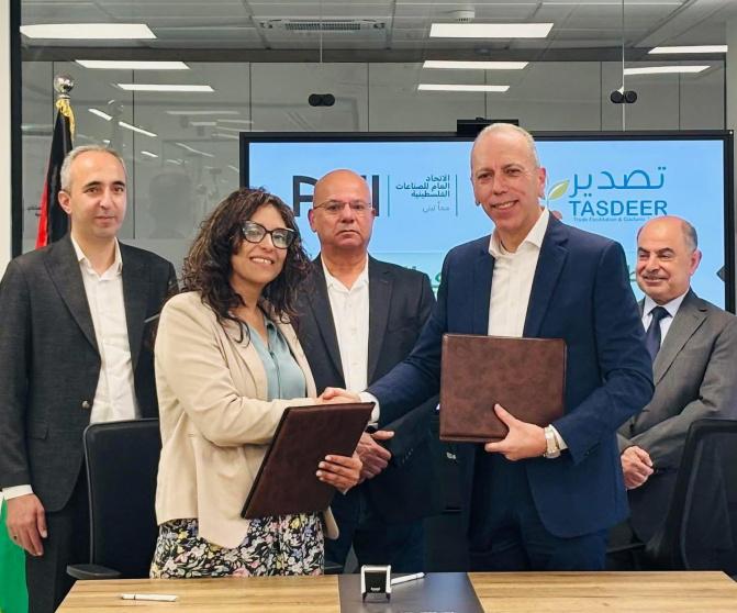 وتم توقيع مذكرة التفاهم بين الاتحاد ومشروع تصدير بحضور رئيس الاتحاد العام للصناعات السيد نصار نصار وأعضاء مجلس اداره الاتحاد العام والأمينه العامة السيده سها عوض الله والسيد نسيم نور مدير برنامج تصدير وطاقم برنامج تصدير.