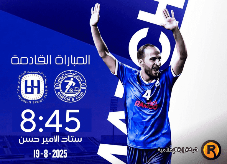 تتجه الأنظار عصر اليوم نحو ملعب الحسن الدولي، حيث يلتقي الحسين إربد مع ضيفه الرمثا في قمة محمومة ضمن الجولة الرابعة من الدوري الأردني للمحترفين – CFI لموسم 2025-2026. اللقاء يُعد منعطفًا مبكرًا في صراع المنافسة الشرسة على اللقب. وفقًا لجدول الاتحاد الأردني، تنطلق المباراة في تمام الساعة 20:45 بتوقيت عمان ومكة المكرمة.(JFA - الاتحاد الأردني لكرة القدم)