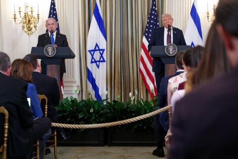 وأعلن نتنياهو دعمه لخطة ترامب لإنهاء الحرب في غزة، مؤكدا أنها ستعيد كل الأسرى الأحياء والأموات وتضمن ألا تشكل غزة تهديدا لإسرائيل مرة أخرى، وستنزع سلاح حماس، كما ستضمن إدارة لقطاع غزة لا تشارك فيها حماس ولا السلطة الفلسطينية.