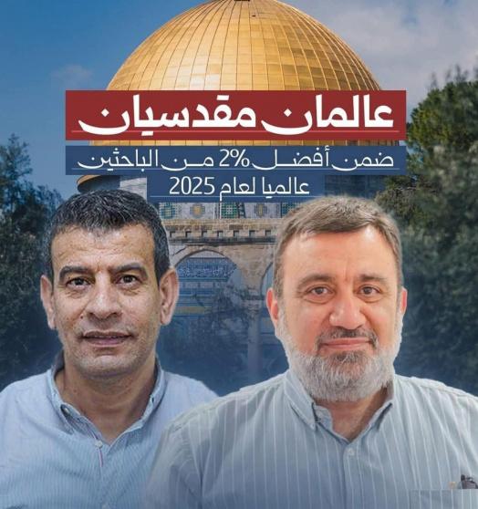إن إدراج اسمي الحسيني والخضور ضمن قائمة العلماء الأكثر تأثيرًا عالميًا لا يُعدّ مجرد إنجاز شخصي، بل هو وسام فخر للقدس وفلسطين، ودليل جديد على أن العقل الفلسطيني قادر على المنافسة والإبداع رغم كل الظروف.