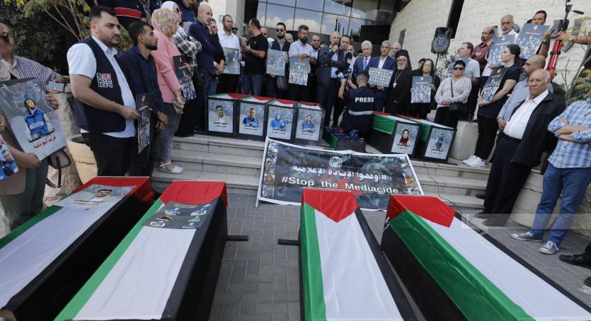 وسلّم وفد من الأمانة العامة لنقابة الصحفيين الفلسطينيين عريضة رسمية إلى ممثلية الأمم المتحدة في رام الله، طالبت بتوفير الحماية الدولية الفعلية للصحفيين الفلسطينيين، ومحاسبة قادة الاحتلال على جرائمهم ضد الإعلام والعاملين فيه، واعتبار ما جرى في غزة "أول إبادة إعلامية في تاريخ الإنسانية".