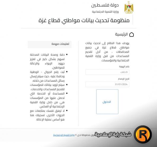 للدخول إلى رابط التسجيل وتحديث بيانات وزارة التنمية الاجتماعية في غزة لمساعدات النازحين، اضغط هنا مباشرة: