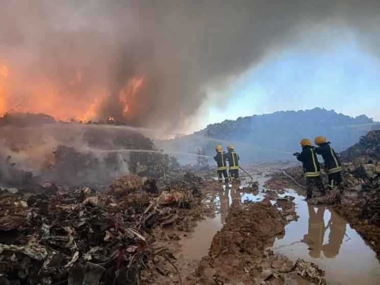 وساهم تكديس المركبات ومواد الخرده على ارتفاعات كبيرة بصعوبه السيطره على النيران لما تحتويه هذه المواد من اجزاء بلاستيكيه ومطاطية سريعة الاشتعال ووصول السنة اللهب الى الالاف الاطنان من المواد المكدسة.
