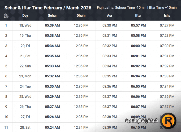 ويُنصح المسلمون بالاعتماد على جدول موحّد طوال الشهر لتفادي الاختلاف بين التطبيقات المختلفة.