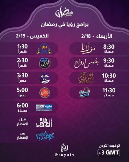 ملاحظة تحريرية: المواعيد التالية وفق الخريطة الرمضانية المعتادة لقناة قناة رؤيا بعد الإفطار، وقد تخضع لتحديثات رسمية قبل بداية الشهر.