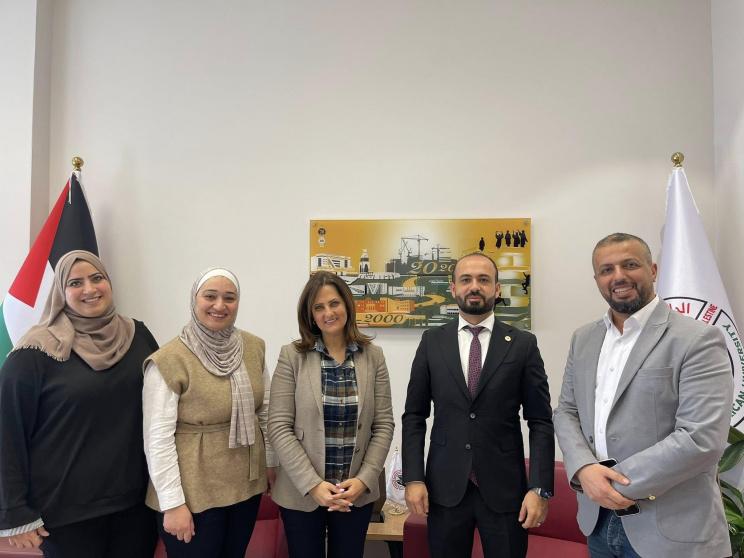 حيث التقت السيدة سحر عثمان، المديرة التنفيذية للجمعية وطاقم المشروع، بالدكتور براء عصفور رئيس الجامعة العربية الأمريكية، وتم خلال اللقاء استعراض مشروع "مسارات إعلامية " المزمع تنفيذه بالتعاون مع الجامعة في محافظتي جنين ورام الله. كما جرى التأكيد على أهمية تعزيز التكامل بين المؤسسات الأكاديمية وبرامج التدريب التطبيقي التي يوفرها المشروع، بما يسهم في خلق فرص مهنية واقعية للطلبة، خاصة الشابات، ودعم المبادرات الإعلامية الناشئة.