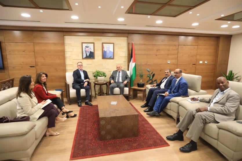 بحث وزير الحكم المحلي د. سامي حجاوي، مع المختص بالشؤون الانتخابية والسياسية - شعبة المساعدة الانتخابية وادارة الشؤون السياسية وبناء السلام في الامم المتحدة ريشارد جيي، مراحل العملية الانتخابية لمجالس الهيئات المحلية والمقرر اجراؤها في 25 من نيسان العام الجاري، والتي تُشرف عليها لجنة الانتخابات المركزية بشكل كامل.