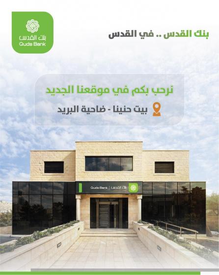 بنك القدس في القدس يفتتح فرع بيت حنينا – ضاحية البريد ويبدأ استقبال العملاء