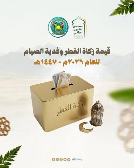 أعلن المجمع الفقهي العراقي بالتنسيق مع ديوان الوقف السني عن تحديد مقدار زكاة الفطر وفدية الصيام للعام 2026، داعيًا المواطنين إلى الالتزام بالقيمة المعلنة والمبادرة إلى أدائها ضمن الأوقات الشرعية المحددة خلال شهر رمضان المبارك.