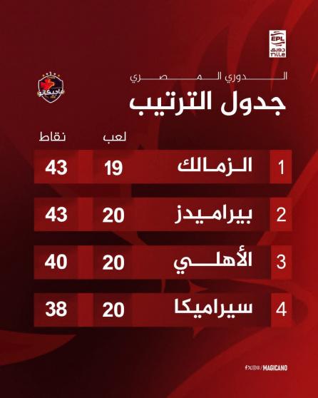 مركز بيراميدز والاهلي والزمالك في جدول ترتيب الدوري المصري 2026 بعد مباريات اليوم