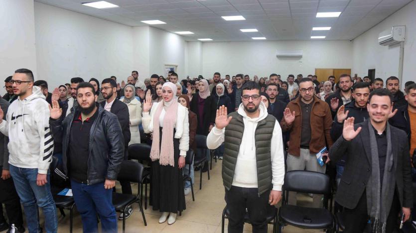أدّى 91 مهندسًا ومهندسة من مختلف التخصصات الهندسية، يوم الثلاثاء الموافق 31/3/2026، قسم مزاولة المهنة، خلال جلسة مركزية عُقدت في قاعة مجمع النقابات المهنية بمدينة البيرة، بحضور نقيب المهندسين وأعضاء من مجلس النقابة، والمدير العام، ومدير دائرة الشؤون الإدارية، وموظفي قسم التسجيل.