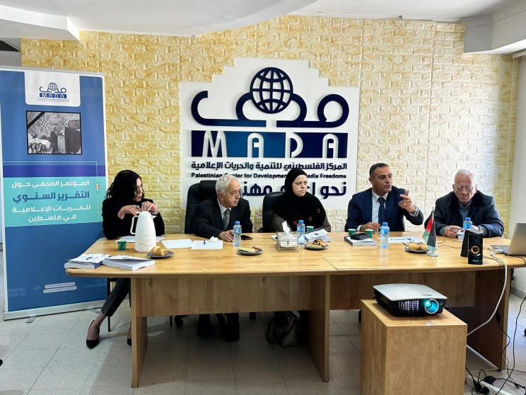 أوصى الحضور في المؤتمر الصحفي الذي عقده المركز الفلسطيني للتنمية والحريات الإعلامية "مدى" حول نتائج تقريره السنوي حول حالة الحريات الإعلامية في فلسطين خلال العام الماضي 2025 اليوم الثلاثاء بضرورة أن تتعاون المؤسسات الإعلامية لإطلاق نقد مسؤول للمجتمع الدولي لتحريك البوتقة المسؤولة عن الإفلات من العقاب، وتحديد استراتيجيات المساءلة على المستوى الدولي بوجود خطط ومواد ورؤية واضحة، كما اوصوا بضرورة رفع الوعي والمعرفة لدى الصحفيين في المصطلحات التي تعتبر تهديدات وانتهاكات تستوجب الاعتقال من قبل سلطات الاحتلال.