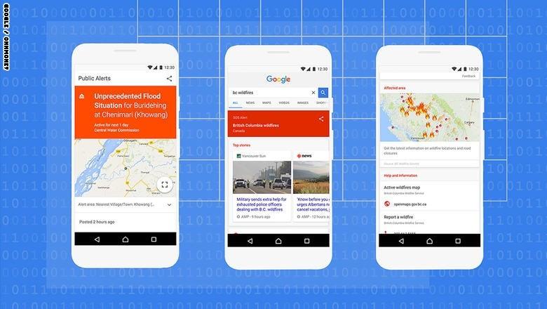 وستظهر التنبيهات التي تشمل معلومات عن وجود حوادث، مثل حرائق الغابات والفيضانات والزلازل، لتتوفر تفاصيل مثل أرقام الطوارئ وترجمة للغات المختلفة في أعلى شاشة المستخدم لمحرك البحث "جوجل".