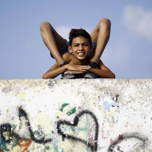 على شكل كرة القدم، يقوم الطفل الغزي يوسف البهتيني بلف أطراف جسده بليونة فائقة، في حركة جسدية فريدة من نوعها يُطلق عليها "الأخطبوط"، يسعى من خلالها لتحطيم رقم قياسي قديم ودخول موسوعة غينيس للأرقام القياسية.